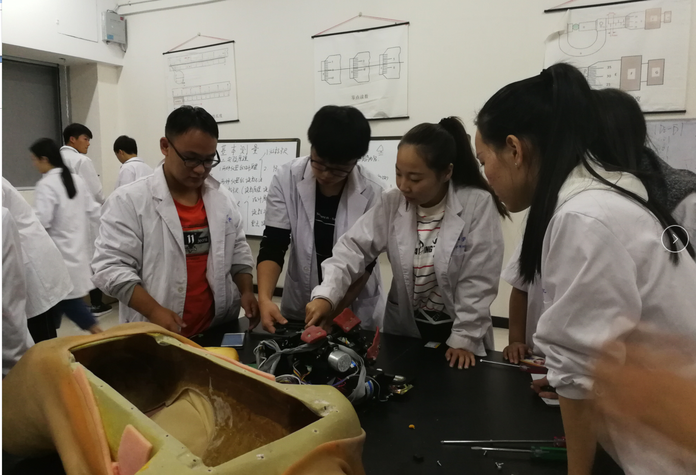 此次大赛中,采用的心肺复苏术为国际最新操作标准。C胸外按压→A开放气道→B人工呼吸,有条件可采取D—自动体外除颤。比赛用心肺复苏模拟人,主要功能是提供心肺复苏的操作流程练习和考核。参赛同学现场组织拆卸并维修模拟人,主要目标为实现已经报废的模拟人的心肺复苏功能。比赛中,各组参赛人员合理分工、相互协作、最终均完成了心肺复苏模拟人的维修,部分模拟人能够实现心肺复苏功能。参赛同学态度认真,比赛氛围紧张而又激动。