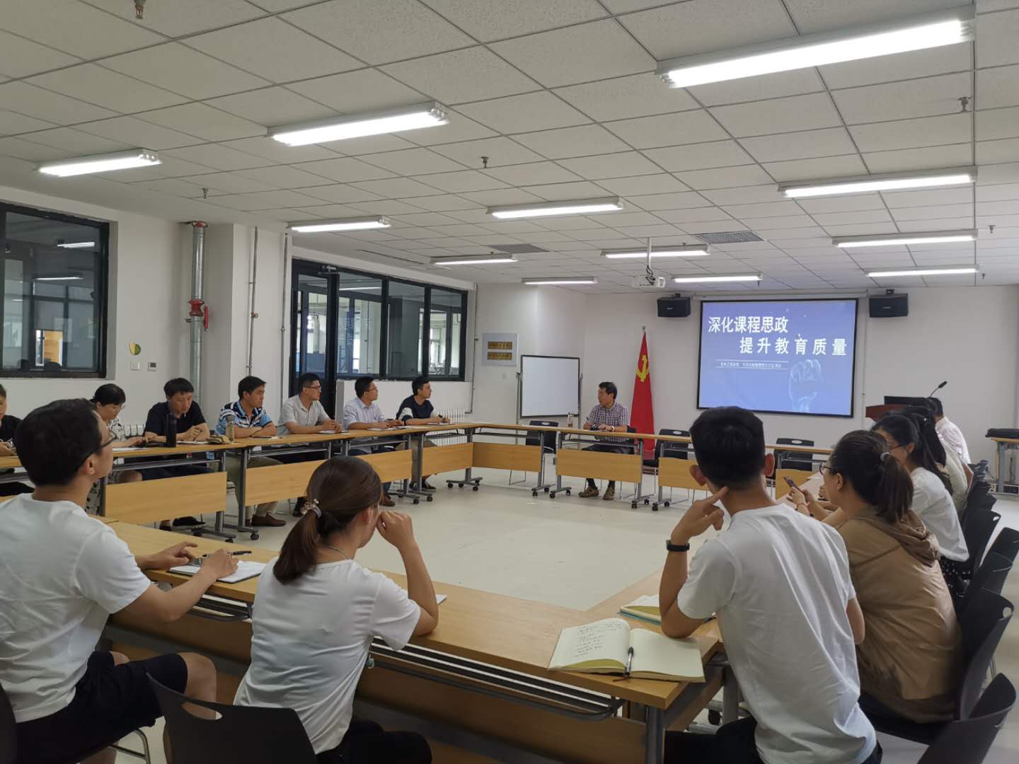 许多教师分别围绕个人体会进行了发言。他们畅谈教育思想大讨论学习过程中的心得体会,并将大讨论学习内容作为日常工作的思想引领,分别从所在专业的建设情况,课堂教学方法改革、人才培养模式创新、课程思政、教学教改取得成绩等内容与参会全体人员进行了分享。