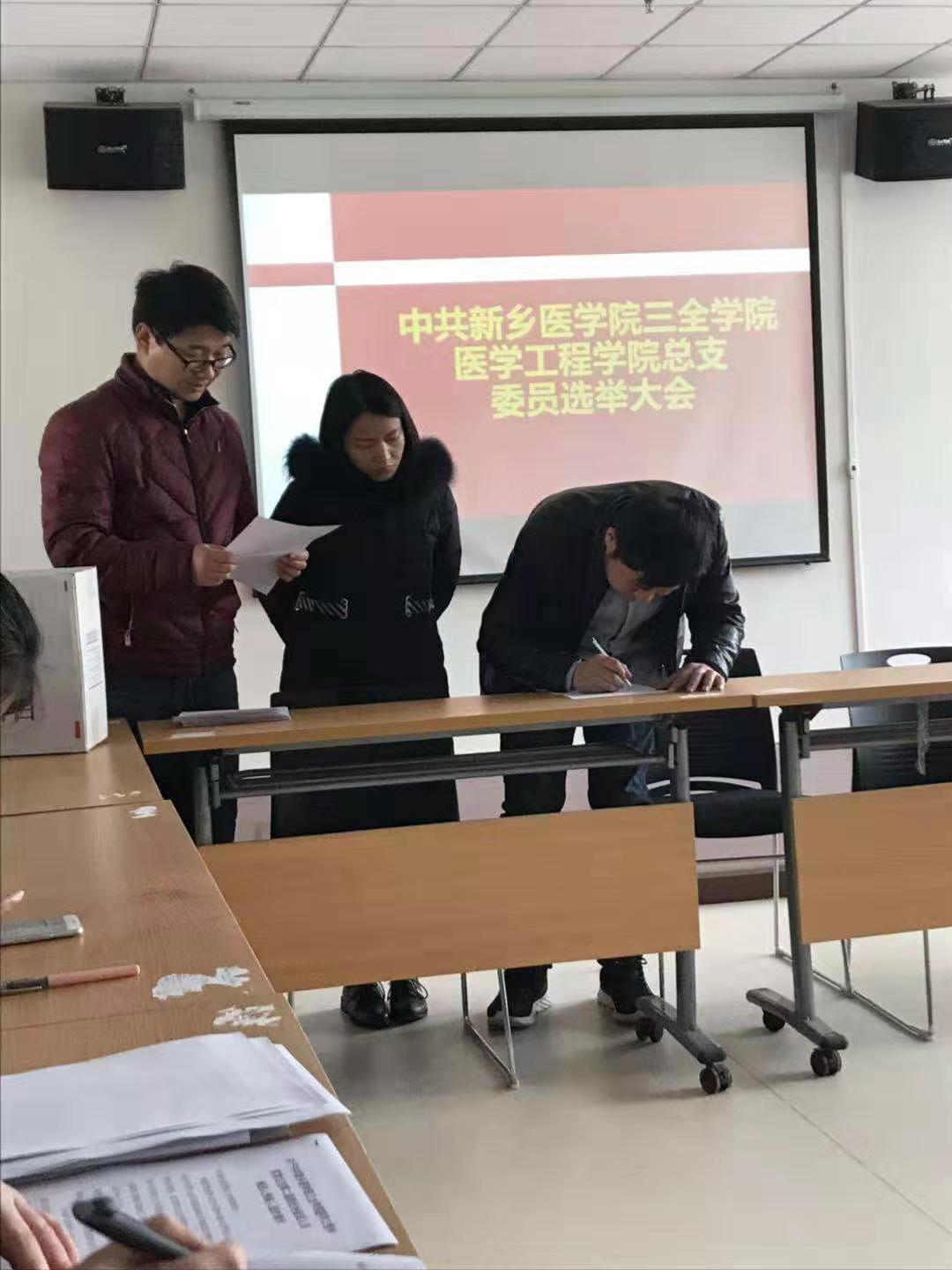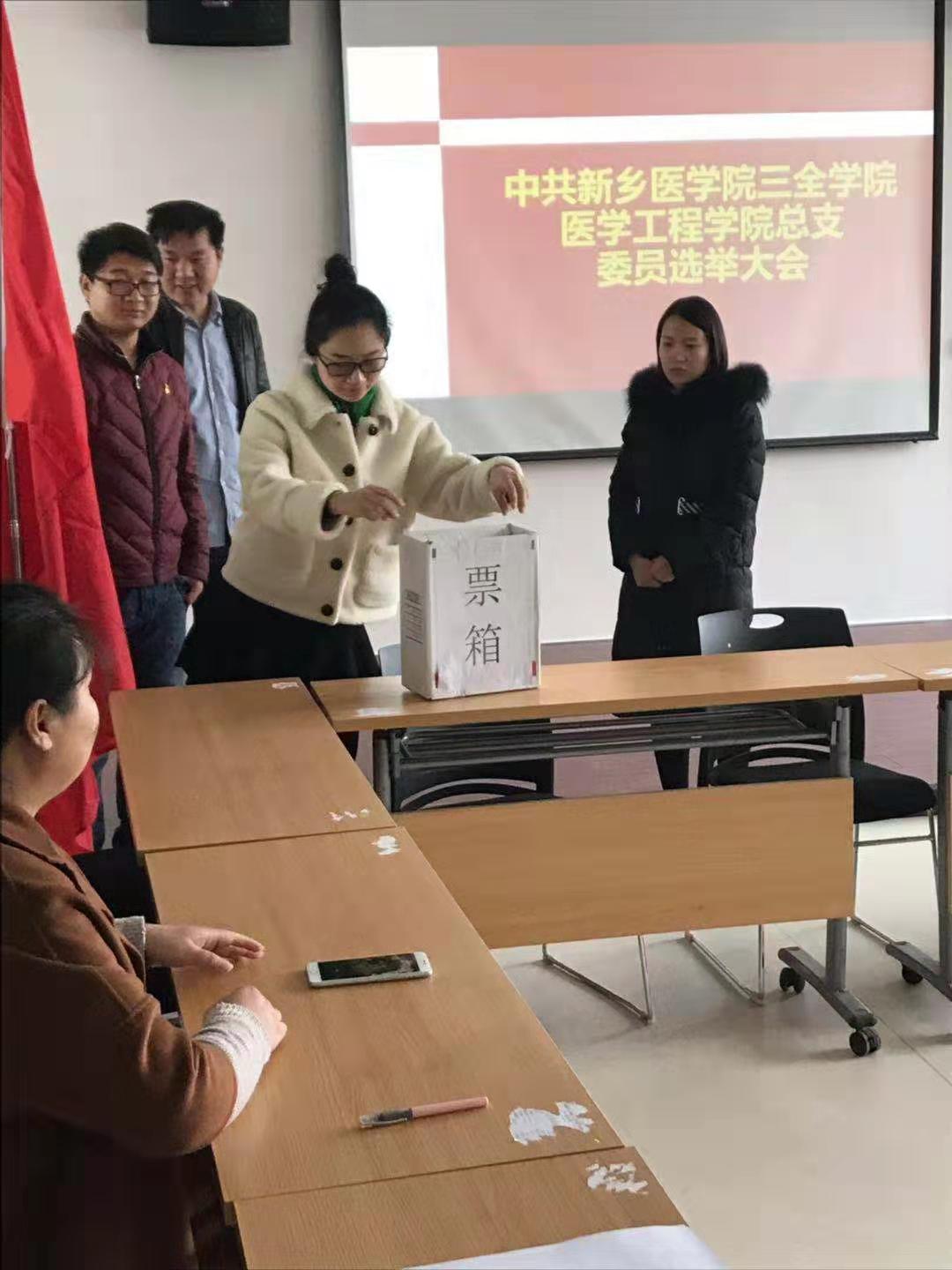2019年3月5日,新乡医学院三全学院医学工程学院党总支委员会换届大会在医工实训楼五楼党员临时活动室成功举行。医学工程学院党总支18位正式党员参加会议,新乡医学院三全学院党委高嵩同志列席大会。会议由医学工程学院党总支委员陈坤主持。