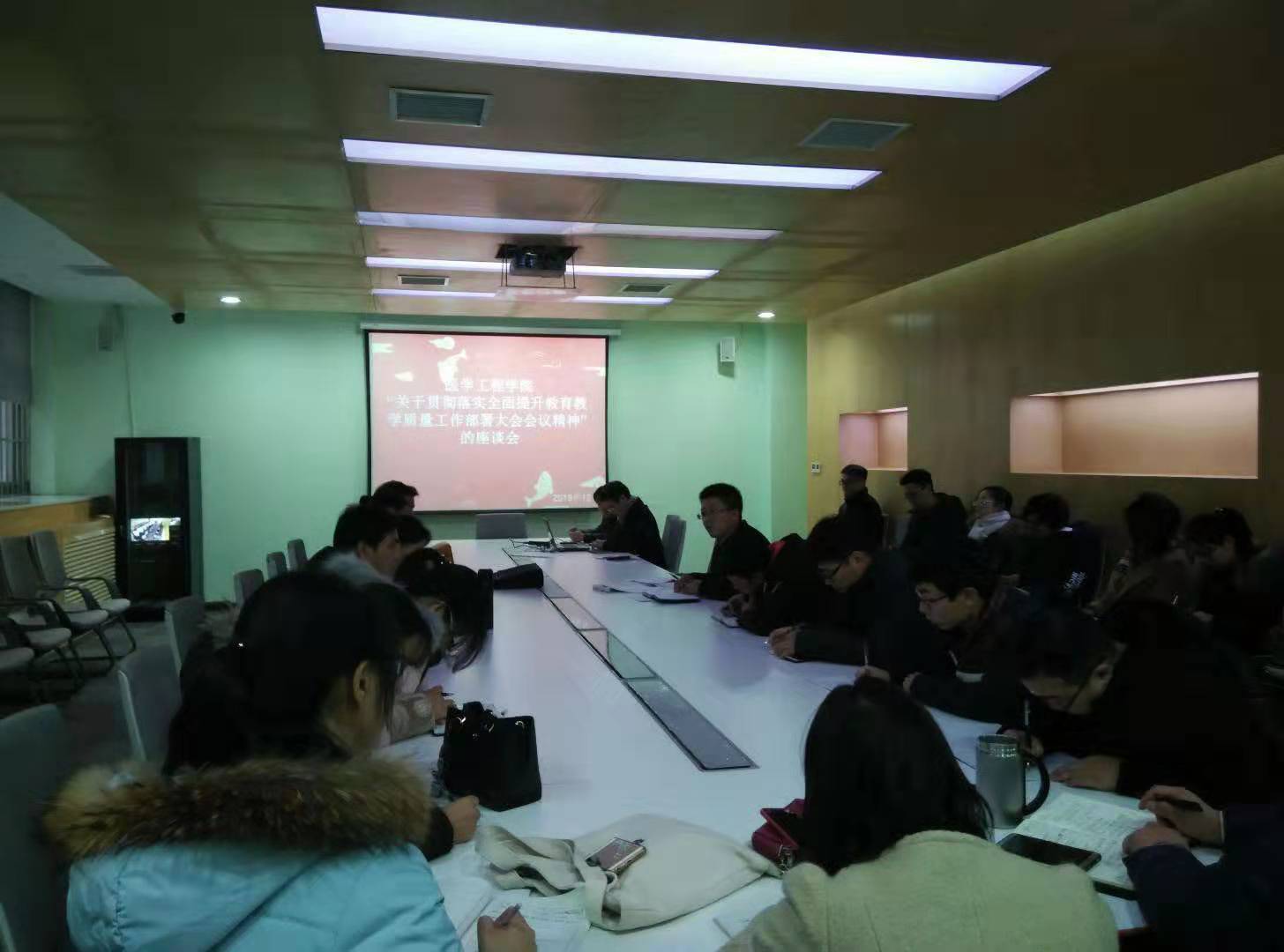 元月11日,结合贯彻教育质量提升会议精神。医学工程学院组织全体教师政治理论学习会,学习习近平总书记在全国教育工作大会、全国组织工作会议以及全国宣传思想工作会议等三个会议上的重要讲话精神。学习会由陈继超副书记主讲。