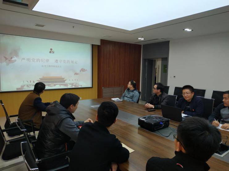 为深入贯彻党的十九大精神,发扬优良传统,弘扬优良校风,进一步密切联系师生,规范教职工行为,严肃学校纪律,确保学校各项工作和事业健康进行,根据学校党委理论制度学习工作安排。医学工程学院党总支结合当前正在开展的“不忘初心、牢记使命”主题教育活动,深入开展“讲规矩、守纪律、强担当、有作为”学习党内法规和学校规章制度系列活动。
