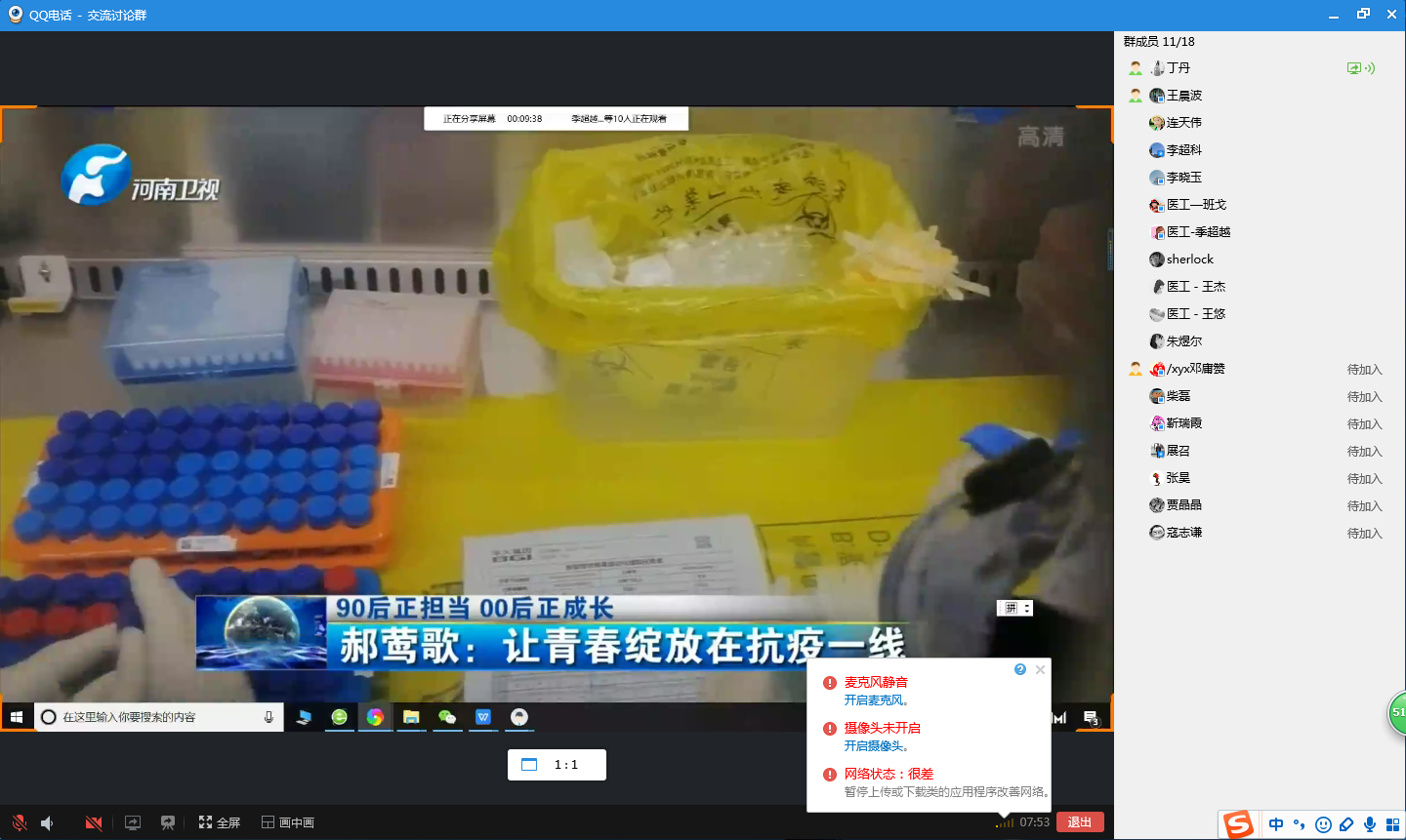 全体党员通过手机和电脑,以语音会议的形式做了讨论发言,提出了意见建议。总支还以视频接力的形式,开展“让青春在奋斗中绽放”视频接力活动,表达了向郝莺歌同学学习,坚守岗位,共同抗疫的信心决心。