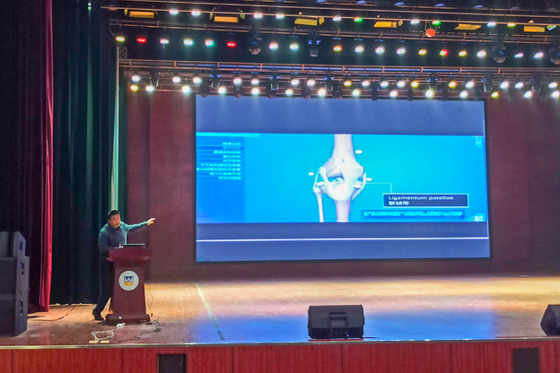 随后,娄岩围绕“基础护理虚拟仿真教学VR解决方案、发热门诊医护人员应对新冠肺炎标准化作业虚拟仿真实验教学及培训项目”等具体案例,揭开VR/AR技术应用的神秘面纱。他指出:“利用VR/AR技术,可以用最简单的方式,做最复杂的东西。”整场讲座围绕“虚拟现实+医学”主题,通过具体图片、案例、视频为全体师生献上一场精彩的视听盛宴,贴合学生学科发展特色,带领同学们进入虚拟现实的世界,探索其中的奥秘,开拓了同学们的思维和眼界。
