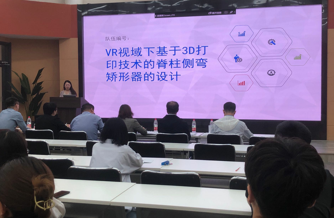 经过激烈的角逐,最终,具有较高创新精神的《VR视域下基于3D打印技术的脊柱侧弯矫形器的设计》获得一等奖;《基于 Raspberry Pi 盲人多功能避障导航眼镜的设计》、《基于深度学习神经网络的智能手语学习与转译装置》两个项目获得二等奖;《基于脑机接口的脑卒中患者康复行走训练系统的设计》、《基于深度学习神经网络的脊柱诊疗装置设计研究报告》、《基于虚拟现实技术对假肢接受腔的VR适配平台搭建》三个项目获得三等奖;《5G时代下基于VR技术的心血管外科手术的模拟场景构建》、《大数据与智慧医疗背景下便携式智能监测仪的研究设计》、《基于心电检测分析猝死预警警报仪》、《焦虑症患者心理治疗的增强现实场景构建》、《新工科视域下基于虚拟现实技术对脑胶质瘤手术的仿真系统的构建》五个项目获得优秀奖。