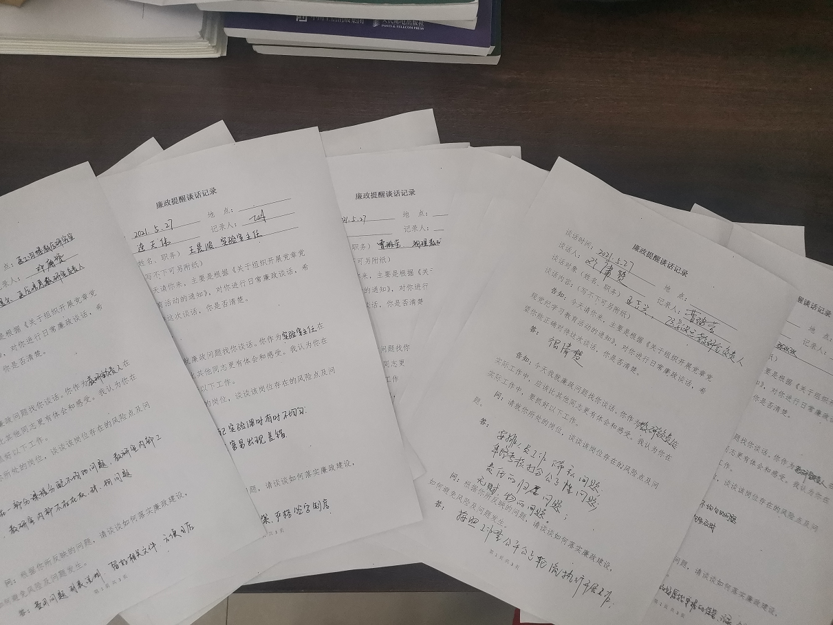5月28日,总支基本完成2021年度第一次廉政提醒谈话。本次谈话对象主要为院系教研室负责人、实验室负责人、教学秘书、行政秘书、科研秘书以及三位中层领导干部。结合相关岗位廉政风险点以及存在的潜在问题,对重点领域要详细谈,深入谈,把督促落实党风廉政建设责任、廉政关爱提醒作为主要谈话内容,面对面指出存在问题,提出改进方向,提醒注意事项,深化廉洁互助,促进党风廉政建设责任落实。