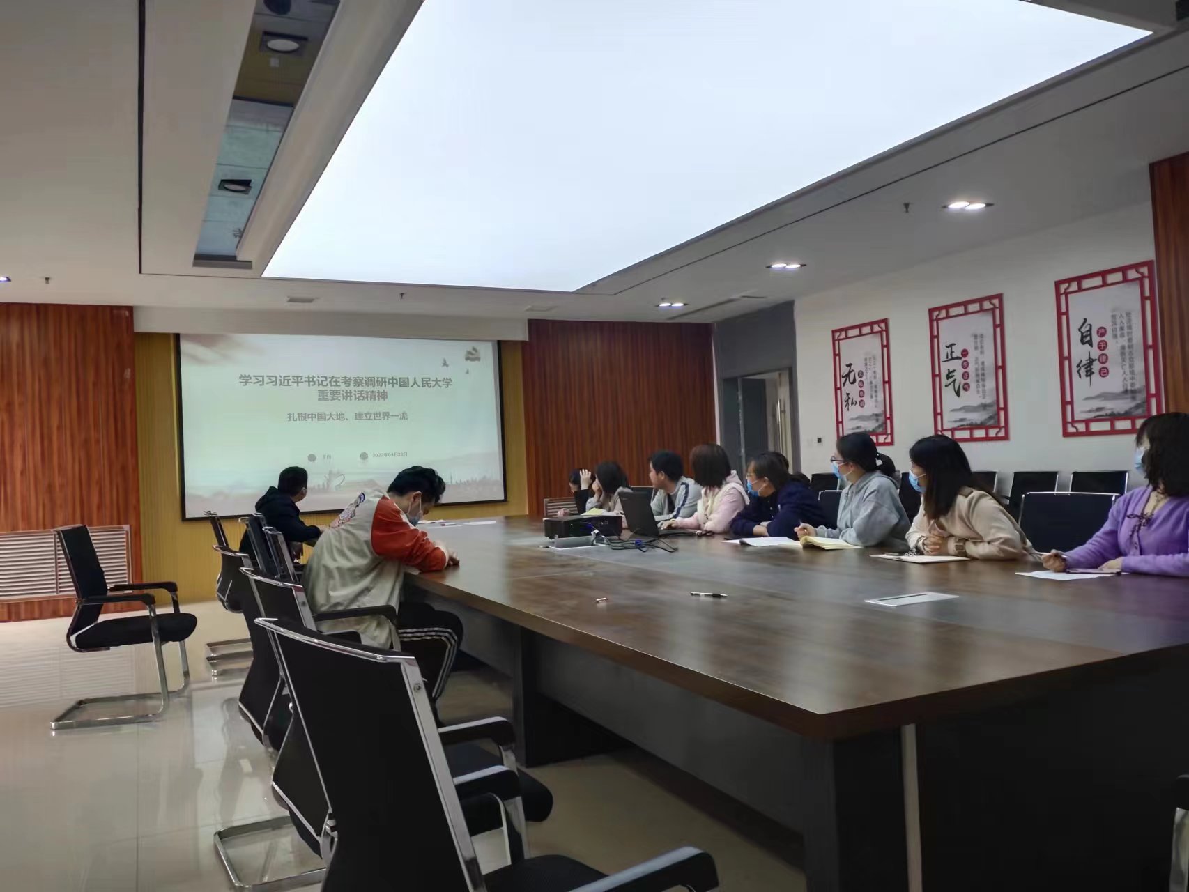 4月28日下午,在支部书记丁丹的组织下,智能医学工程党支部全体无课党员教师在四楼会议室观看和学习了扎根中国大地、建设世界一流——习近平总书记考察调研中国人民大学重要讲话精神。