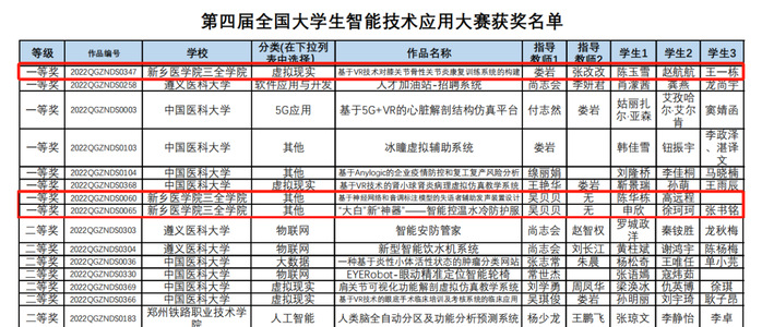 本次大赛是我院第3次参加,能够再次取得优异的成绩,一方面是我校一直以来秉承以赛促学、以赛促教的理念,同时也是我校不断创新教育教学方法,全面提升教学质量的结果,另一方面,源于靳瑞霞院长为此次比赛组建了专业的教师团队对学生进行专业辅导。下一步,学院将积极投身到智能技术应用的实践中,加大竞赛成果转化力度,调动老师们的积极性,注重延伸拓展,把比赛拓展到更深更广层面,使以赛促学、以赛促教的成效更为显著,同时为“新工科+新医科”发展打下坚实的基础!