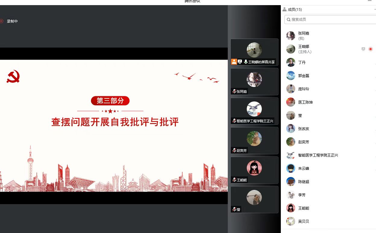 2022年11月22日上午,智能医学工程学院党总支医学工程党支部以腾讯会议的形式开展了主题为“深入学习习近平总书记视察安阳重要讲话精神,大力弘扬红旗渠精神”为主题的专题组织生活会,会议由支部书记王晓娜主持,支部全体党员教师准时参加会议并进行集中学习讨论。