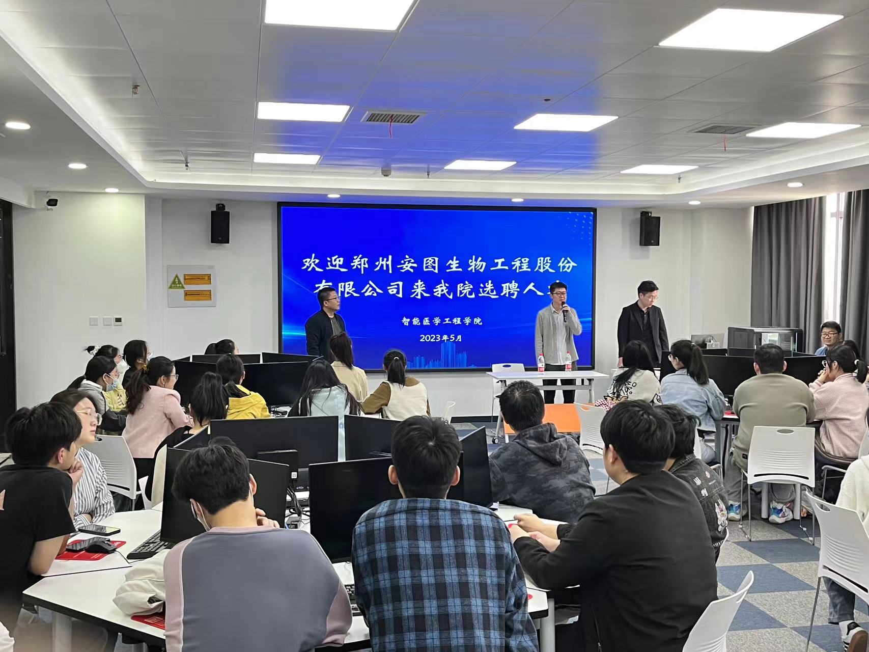 为深入贯彻党的二十大精神,实施就业优先战略,做好用人单位和毕业生的精准对接,深入开展“访企拓岗促就业”专项行动,全力促进2023届毕业生顺利就业、尽早就业,同时积极推进2024届毕业生就业实习工作,积极拓宽学生就业渠道, 5月6日上午,智能医学工程学院举办就业实习“双向选择”洽谈会,邀请合作企业郑州安图生物工程股份有限公司来学院选拔人才。