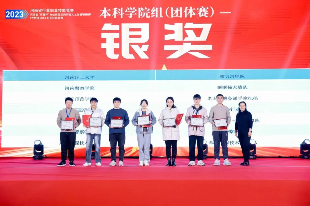 11月25日,2023年河南省行业职业技能竞赛——河南省“天翼杯”电信和互联网行业人工智能训练师(大数据分析)职业技能竞赛在郑州市举行,由我院教师李超科、连天伟指导的2021级数据科学与大数据技术专业孟世博、崔传顺、黄脉涵、王丹、尹凯婷、陈盼盼等六名同学组成两支代表队,历经2个月的集训之后,于当日参与此次竞赛。经过3个小时的激烈角逐,最终我院1号学生代表队在全省各高校64支代表队中脱颖而出,斩获本科学院组(团队赛)银奖。此次竞赛获奖为我院大数据专业在省级以上学科竞赛中的首次夺取佳绩,实现了零的突破!