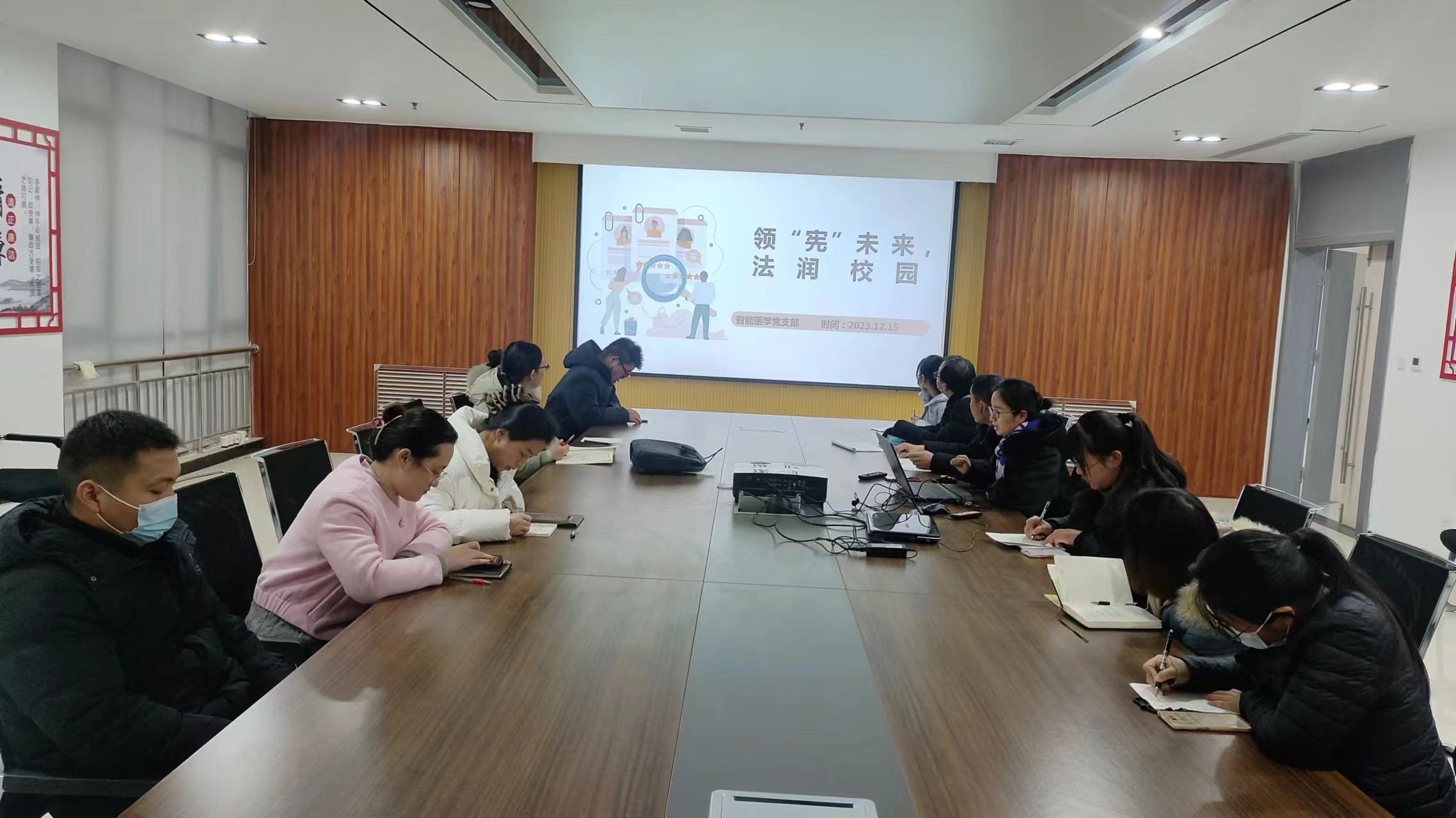 12月15日,智能医学党支部在医工楼四楼党员活动室组织召开12月份“领“宪”未来,法润校园”的主题党日活动和政治理论学习,本次会议由支部书记丁丹主持,支部无课党员教师及入党积极分子参加。