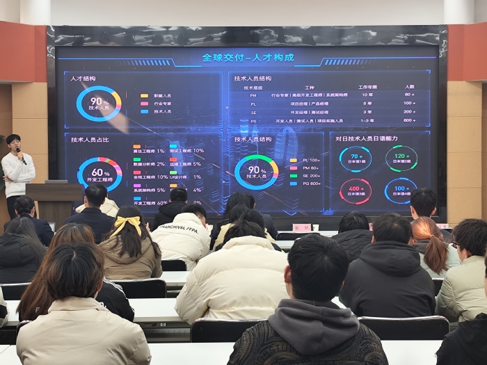 线下宣讲,精准发力。随后,河南八六三软件股份有限公司、亚都医疗科技有限公司、新道科技股份有限公司、河南省云推网络科技股份有限公司等企业召开专场了宣讲会,用人单位负责人在宣讲会上介绍了企业的发展历史、未来发展规划和目标、企业文化等情况,同时对本次招聘岗位、员工的薪资福利、办公环境、职业发展规划和晋升路线等方面进行详细阐述,同学们不仅对企业有了全面的认识,还对自己的职业发展有了更明确的目标。宣讲后,学生们主动与企业工作人员交流,了解企业情况,积极投递简历,现场气氛热烈,交流深入。