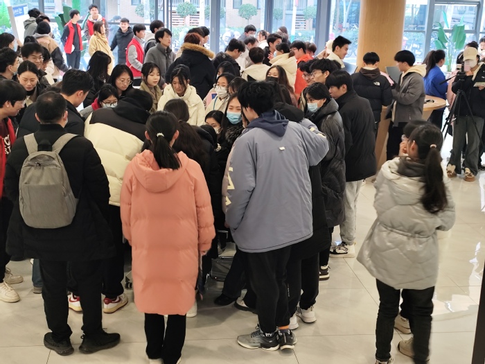 为进一步贯彻落实《教育部办公厅关于开展2024届高校毕业生秋季校园招聘月系列活动的通知》要求,拓宽毕业生就业渠道,在学校就业指导服务中心的指导下,1月5日,智能医学工程学院联合智行书院在智行书院大厅举行了主题为“‘医工-智行’齐携手,双院联动促就业”的线上线下实习就业双选会。学务部主任助理张帆、智能医学工程学院院长韩玉民、副书记兼副院长陈继超、智行书院书记刘凯、智能医学工程学院副院长班戈及部分教师和辅导员出席活动。本次双选会特邀河南八六三软件股份有限公司、亚都医疗科技有限公司、新道科技股份有限公司等9家公司参加,智能医学工程学院等学院相关专业2020级、2021级内外学生200余人参加。