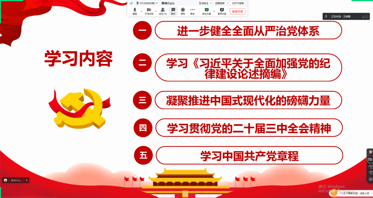 医学工程党支部于7月22日召开7月份主题党日活动,活动主题——践承诺、守党纪、学党史、庆“七一”,会议由支部书记王晓娜主持,带领全体党员和入党积极分子展开学习并进行思考讨论。
