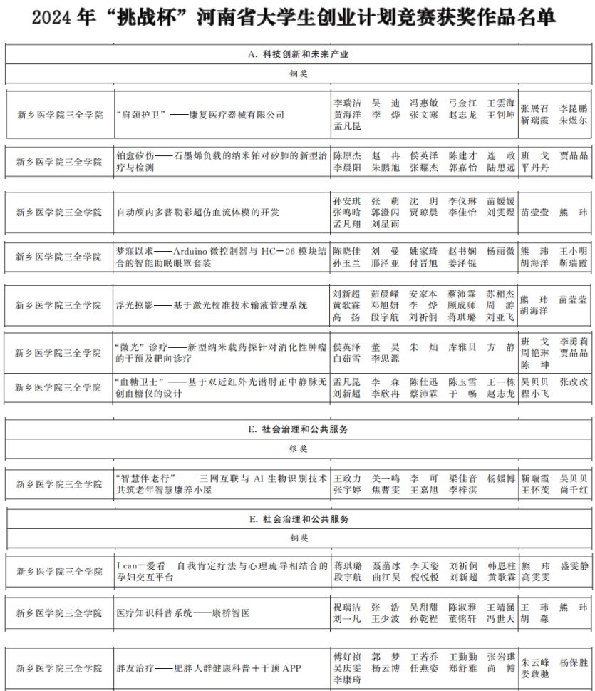 近日,河南省教育厅公布了2024年河南省大学生创新大赛、“挑战杯”河南省大学生创业计划竞赛获奖名单,我院师生团队凭借卓越的创新能力和扎实的科研功底,从众多参赛队伍中脱颖而出,斩获多项殊荣。