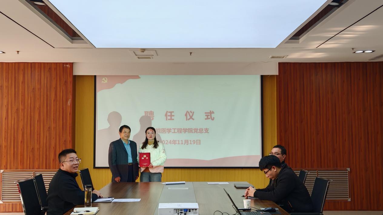 宣讲结束后,智能医学工程学院举行了聘任仪式,聘任王玮老师为学院课程思政指导教师。这一决定旨在进一步加强智能医学工程学院的思政建设工作,提升教师的思想政治素质和教育教学能力。