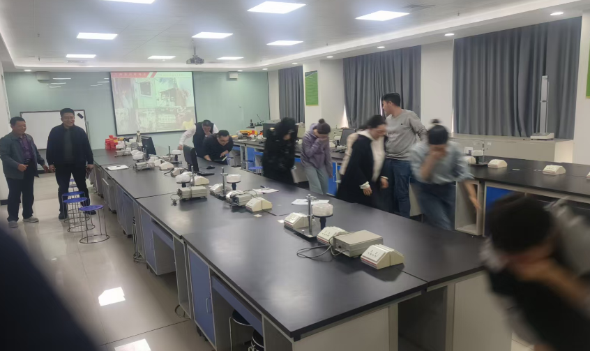 培训中,党总支副书记陈继超强调"党建引领安全治理",院长韩玉民要求狠抓落实实验室安全三级管控方案,体现党政同责管理导向。随后指导逃生演练,学院教师按部就班进行逃生,弯腰、贴墙、捂鼻动作标准,逃生迅速。