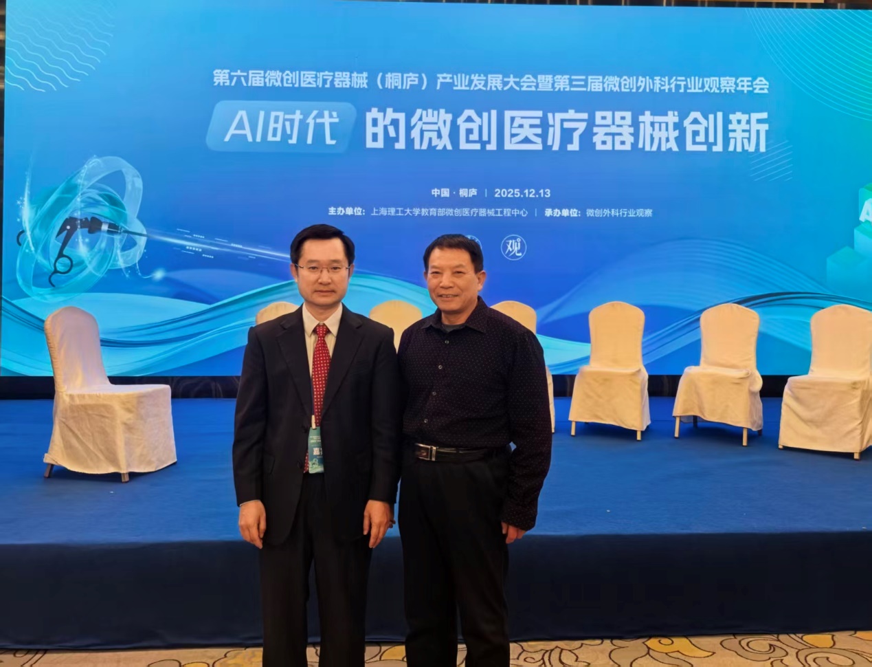 12月13日—14日,韩玉民一行赴桐庐县参加第六届微创医疗器械(桐庐)产业发展大会,深入调研了医疗器械行业发展趋势,并与多家企业就人才培养、实习就业、用人需求、科研合作等开展深入交流,拓展实习就业渠道,调研医疗器械专业建设需求。期间与上海理工大学教育部微创医疗器械工程研究中心常务副主任宋成利教授进行了深入交流,宋成利对我院升研学生质量给予充分肯定,希望有更多学生报考。并介绍了微创医疗器械产业发展趋势、医疗器械相关专业建设方向等,同时希望双方能在专业建设与人才培养等方面开展深入合作。