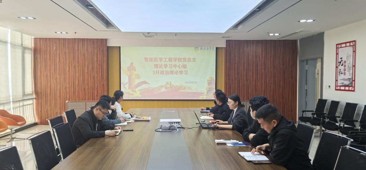 根据豫北医学院党委办公室《关于开展2026年3月份主题党日暨政治理论学习活动安排的通知》要求,智能医学工程学院于3月20日上午在医工实训楼四楼会议室开展了3月份理论学习中心组政治理论学习,会议由党总支副书记班戈主持,智能医学工程学院党总支理论学习中心组全体成员参加。