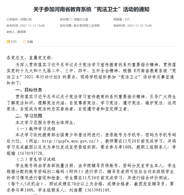 关于参加河南省教育系统“宪法卫士”活动的通知