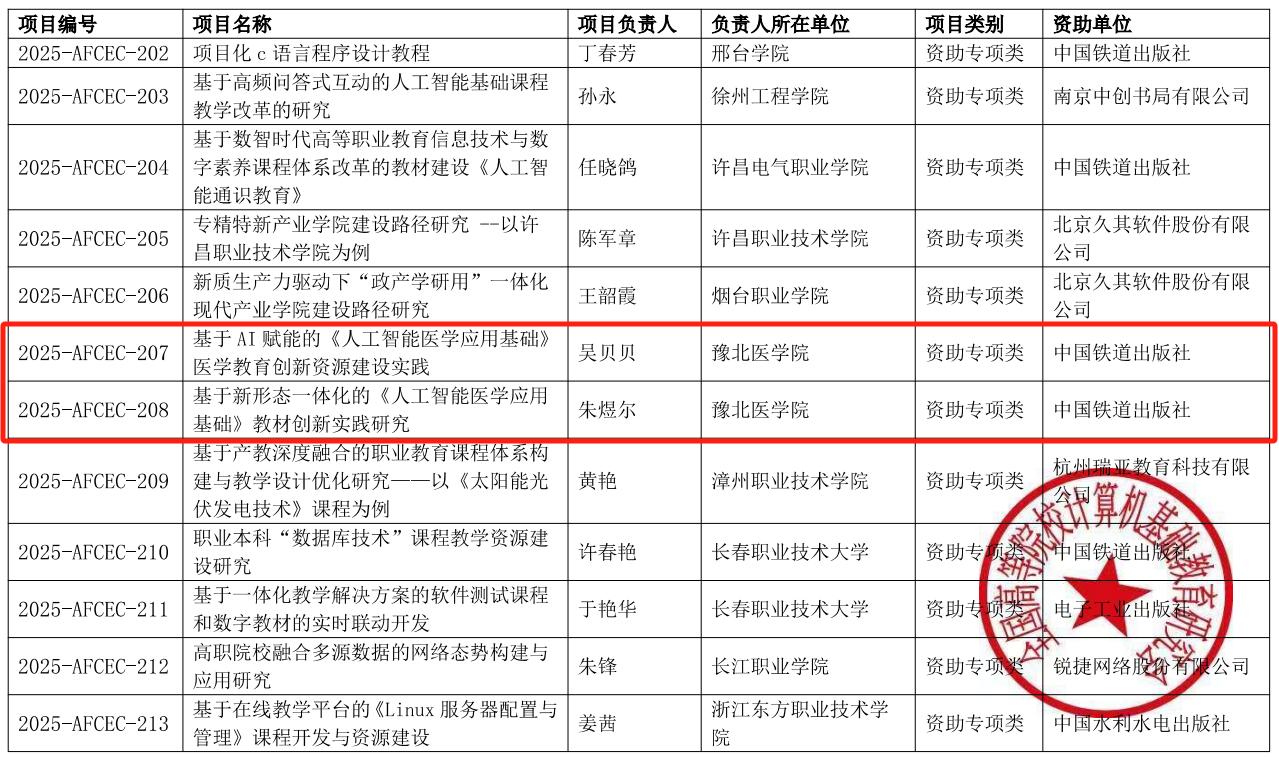 6月27日,全国高等院校计算机基础教育研究会公布了计算机基础教育教学研究项目2025年立项项目名单,智能医学工程学院申报的两项课题成功入选。