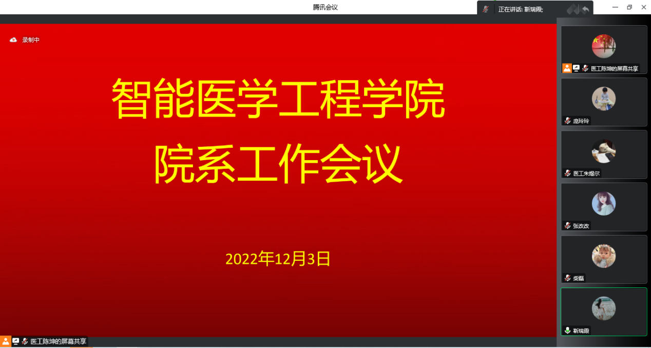 12月3日,智能医学工程学院借助腾讯会议平台召开了院系工作会议,会议由副院长靳瑞霞主持,全体教师参加会议。