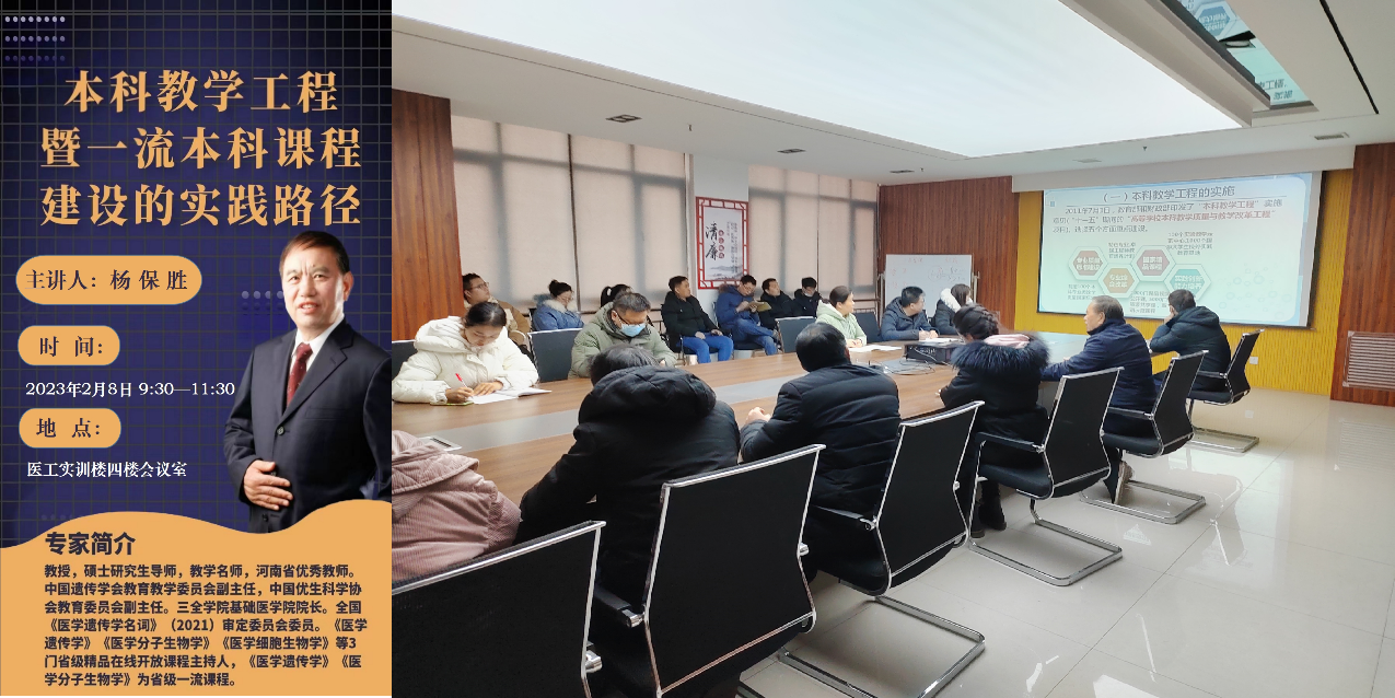 春回大地,万象更新。新学期伊始,为深化我院教学改革研究与实践,深入推进一流课程建设,全面启动“课程建设年”,2月8日上午,我院邀请基础医学院杨保胜教授为全院教师带来了题目为“本科教学工程暨一流...