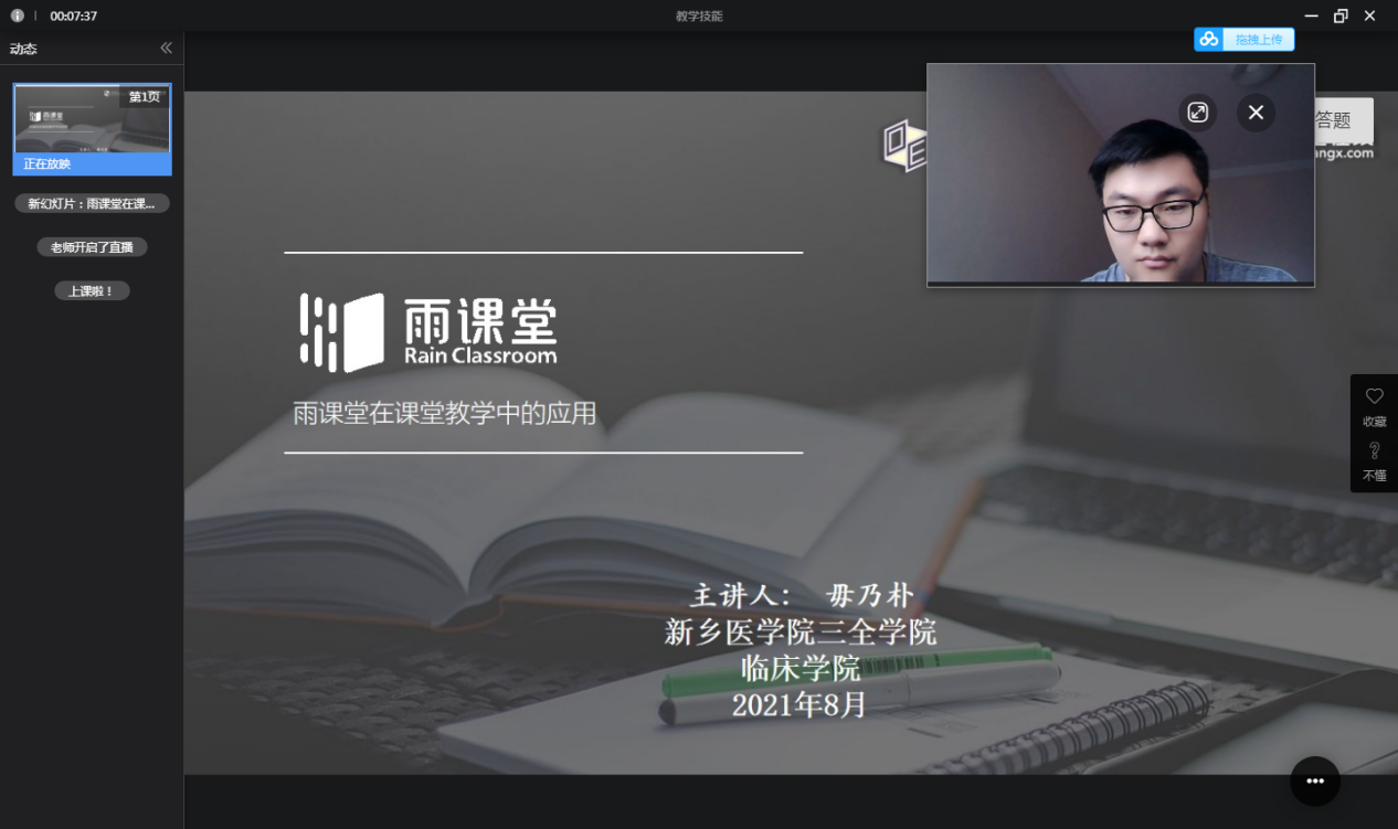 为更好做好线上教学准备工作,同时为新学年教学改革打下良好基础,8月22日,智能医学工程学院邀请临床学院毋乃朴老师为全体教师进行了雨课堂使用培训。首先,毋乃朴老师对雨课堂在课堂教学中的应用进行了...