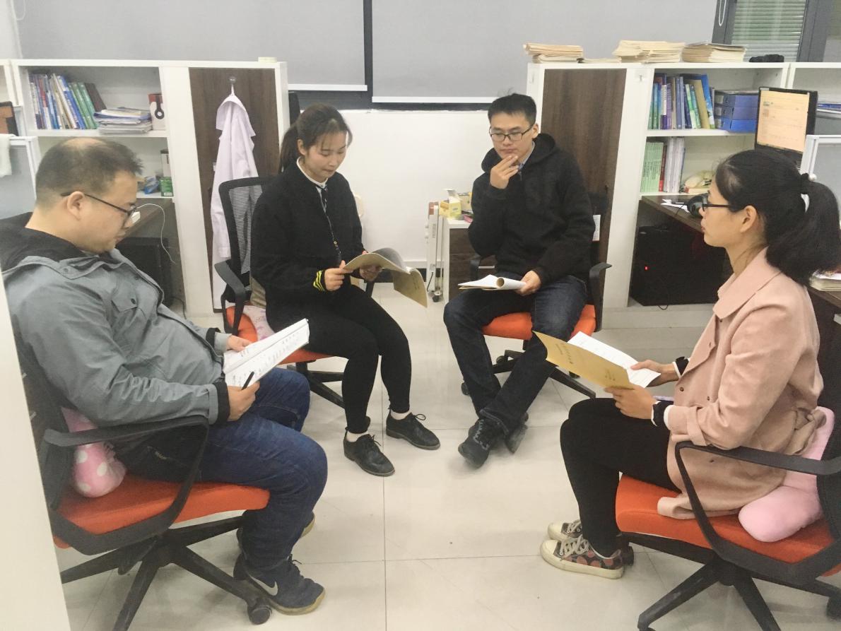 2019年10月24日,在医工实训楼4楼办公室开展电子教研室教研活动,与会人员有张改改、贾磊、李雨、刘江垒,主要议题是中期教学检查工作自查工作。首先检查了大家的听课记录本,基本完成任务,个别老师的班...
