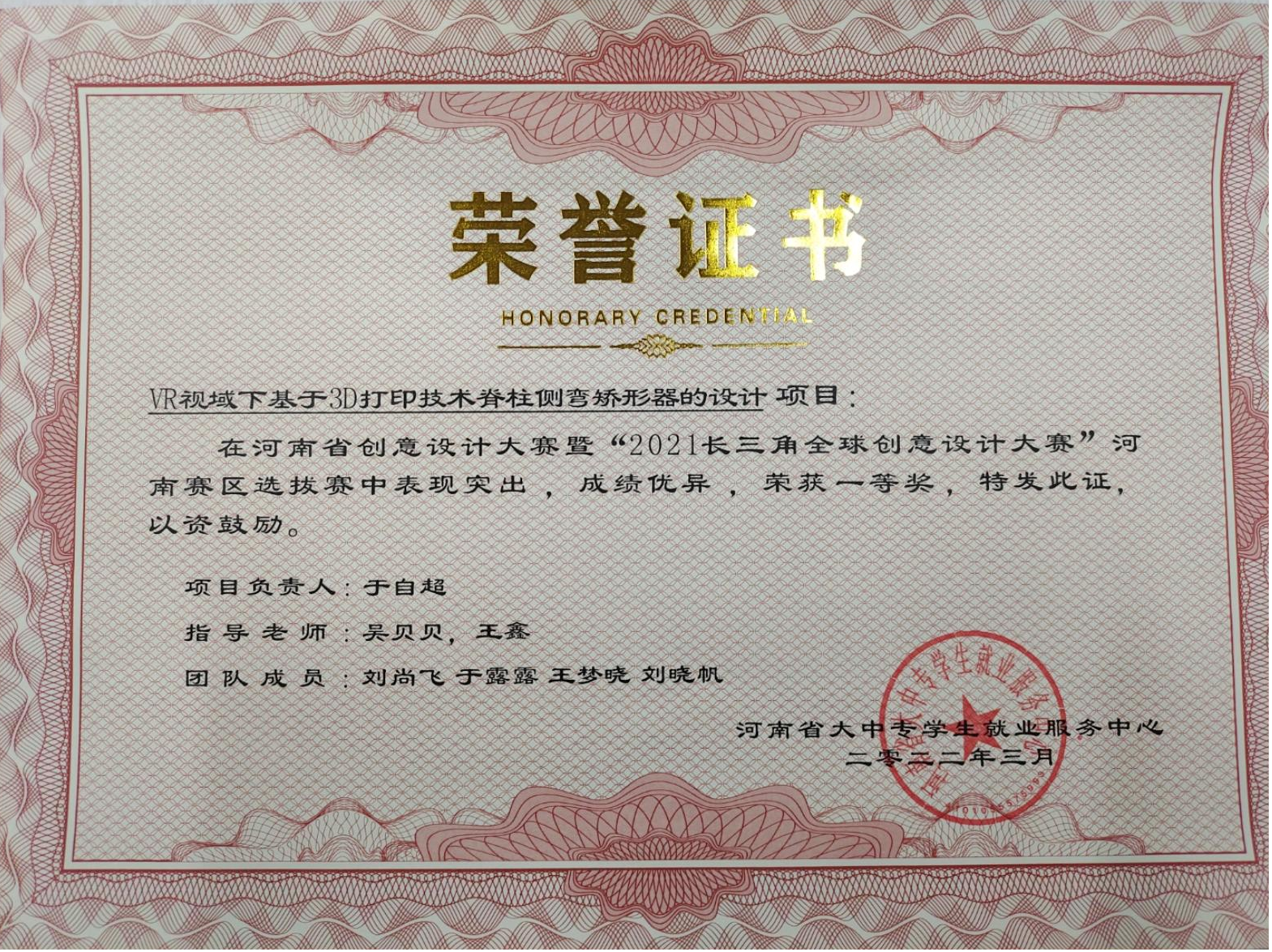 智能医学工程学院学生于自超团队在“2021长三角全球创意设计大赛”河南赛区选拔赛中荣获省级一等...